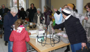 Am Samstag fand die erste Tauschaktion für unbeliebte Weihnachtsgeschenke und Faschingsartikel in der Aula der Theresienklinik statt. Und zur Premiere kamen gleich 250 Personen. Besonders erfreut zeigte sich das Orga-Team darüber, dass Menschen jeden Alters an der Aktion teilgenommen haben, von Kindern bis zu Großeltern. Und so waren auch die Tauschgegenstände bunt gemischt: Spielzeug, Kalender, Kosmetik, Tischdekoration und Kostüme waren dabei die häufigsten Tauschgüter. Und am Ende hatten fast alle Schätze und Schätzchen eine neue Besitzerin oder Besitzer gefunden. Die Höhepunkte waren sicherlich das große grüne Monster und der riesige Seranoschinken. Während das erste bald im Schaufenster des Weltladens zu bestaunen sein wird, wurde letzterer an die Elisabetstube für die Bedürftigenspeisung gespendet.