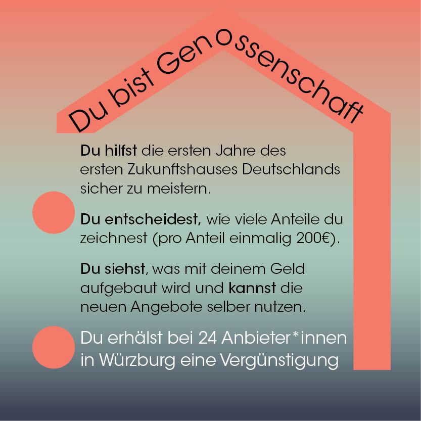 Hier findest du das Beitrittsformular. Für eine stabile finanzielle Basis brauchen wir viele Mitglieder. Als Mitglied wirst du Teil eines echten „Zukunftspioniers“ und profitierst obendrein noch selbst bei 30 Orten in ganz Würzburg mit vielen Vorteilen.