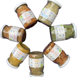 Das Inklusions-Unternehmen Karma Kollektiv produziert in Deutschland Gewürzmischungen in Pfandgläsern. Die biologischen und fair gehandelten Rohstoffe werden dabei nach strengen Kriterien von weltweiten Lieferanten bezogen.