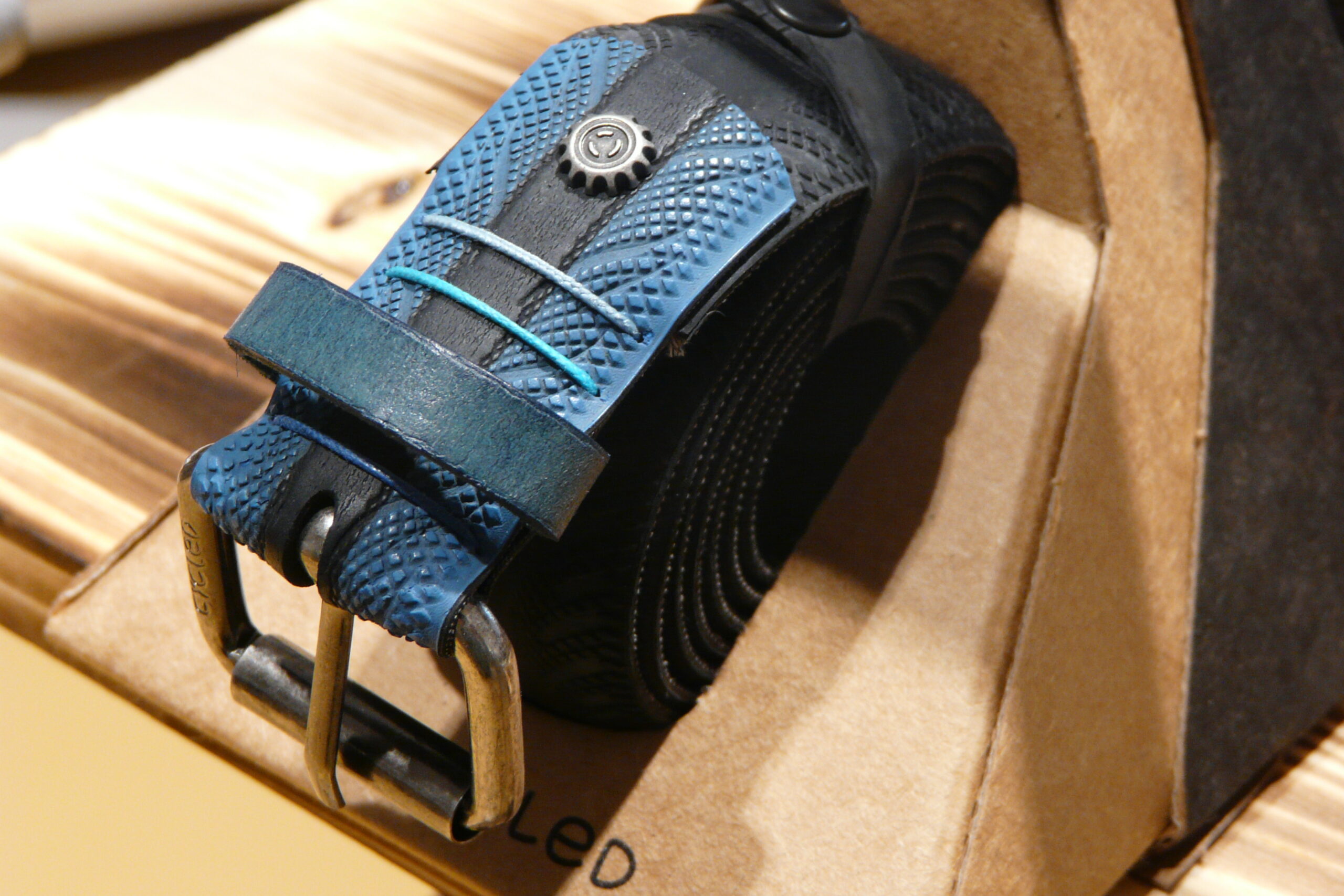 Im Zukunftshaus findest du Gürtel, Armbänder und Schlüsselanhänger aus alten Rennradreifen (s. Bilder und weitere Artikel von cycled).