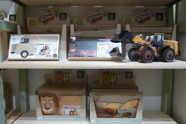 Die Holzlieferanten sind FSC und/oder PEFC zertifiziert. Das Papier trägt das Siegel Recycling FSC Mix oder Blauer Engel, die Druckerfarben sind Greenguard Gold ausgezeichnet.