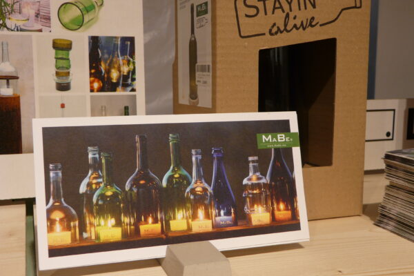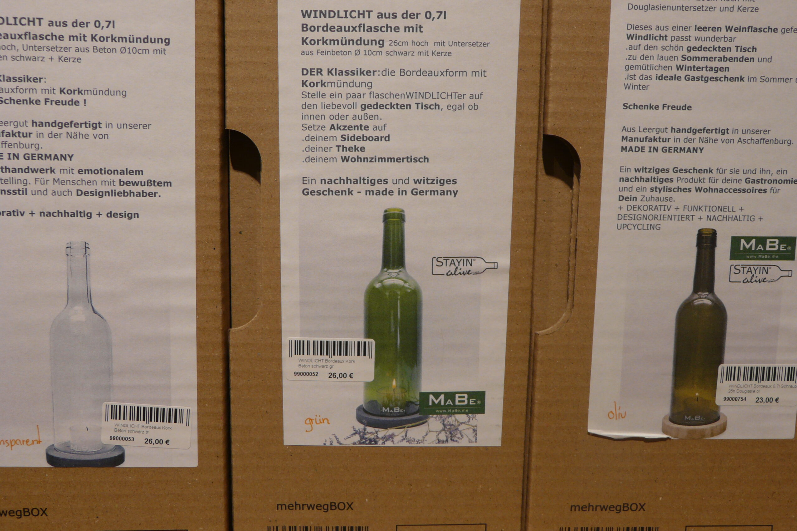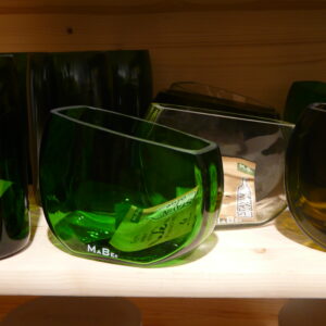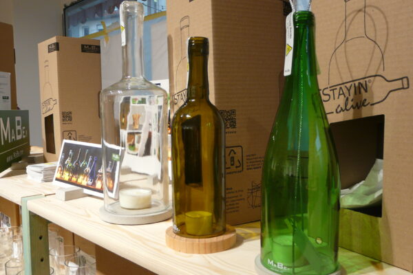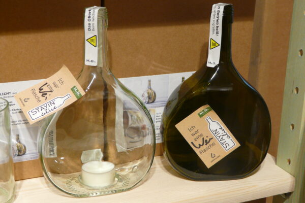 Im Zukunftshaus findest du regionale Produkte aus alten Flaschen und Holz für die Küche, dein Wohnzimmer und den Garten.