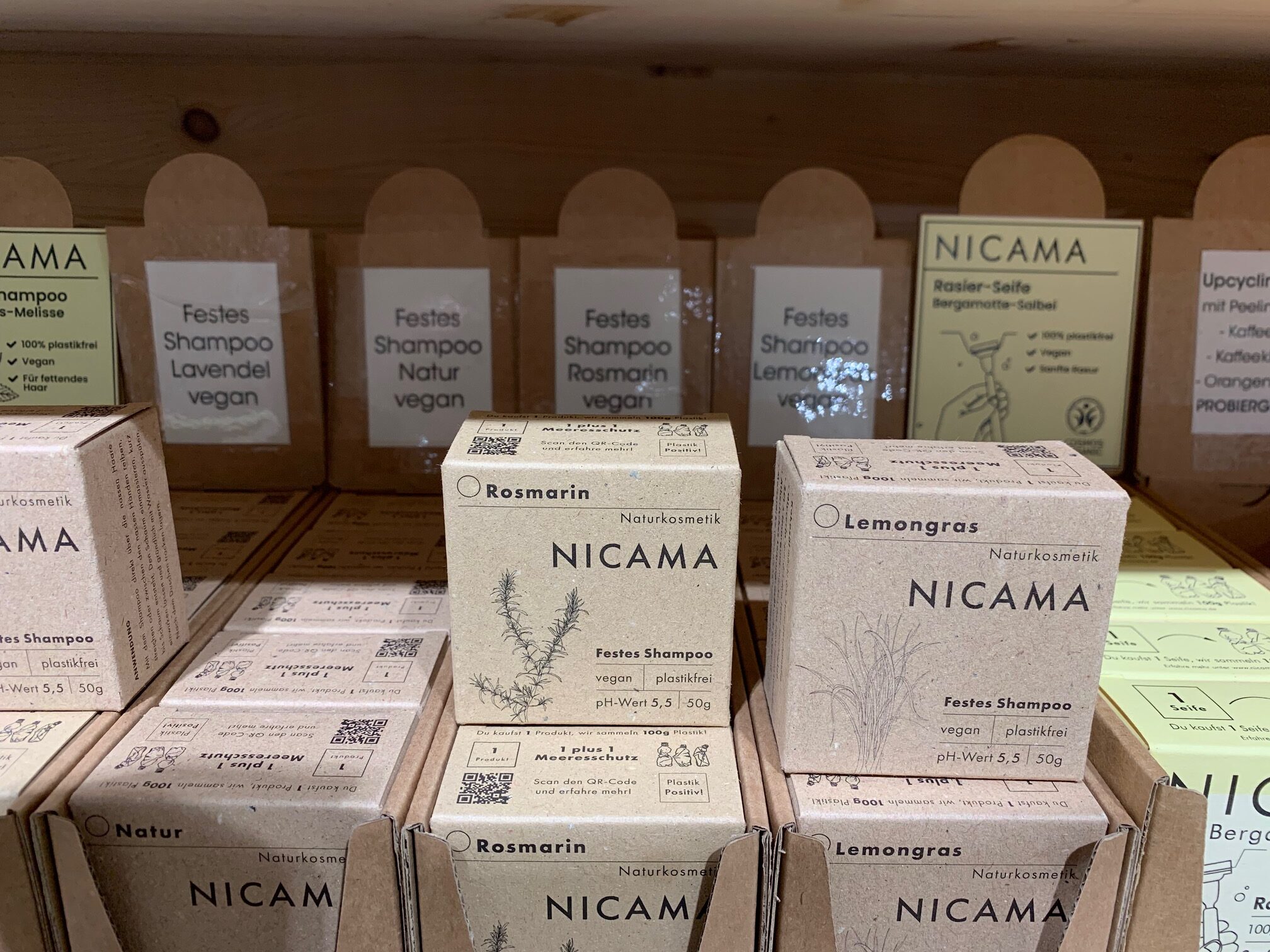 Die Produkte sind komplett plastikfrei verpackt und pro verkauftem Produkt werden 100g Plastik in Küstenregionen gesammelt (https://nicama.cleanhub.io)