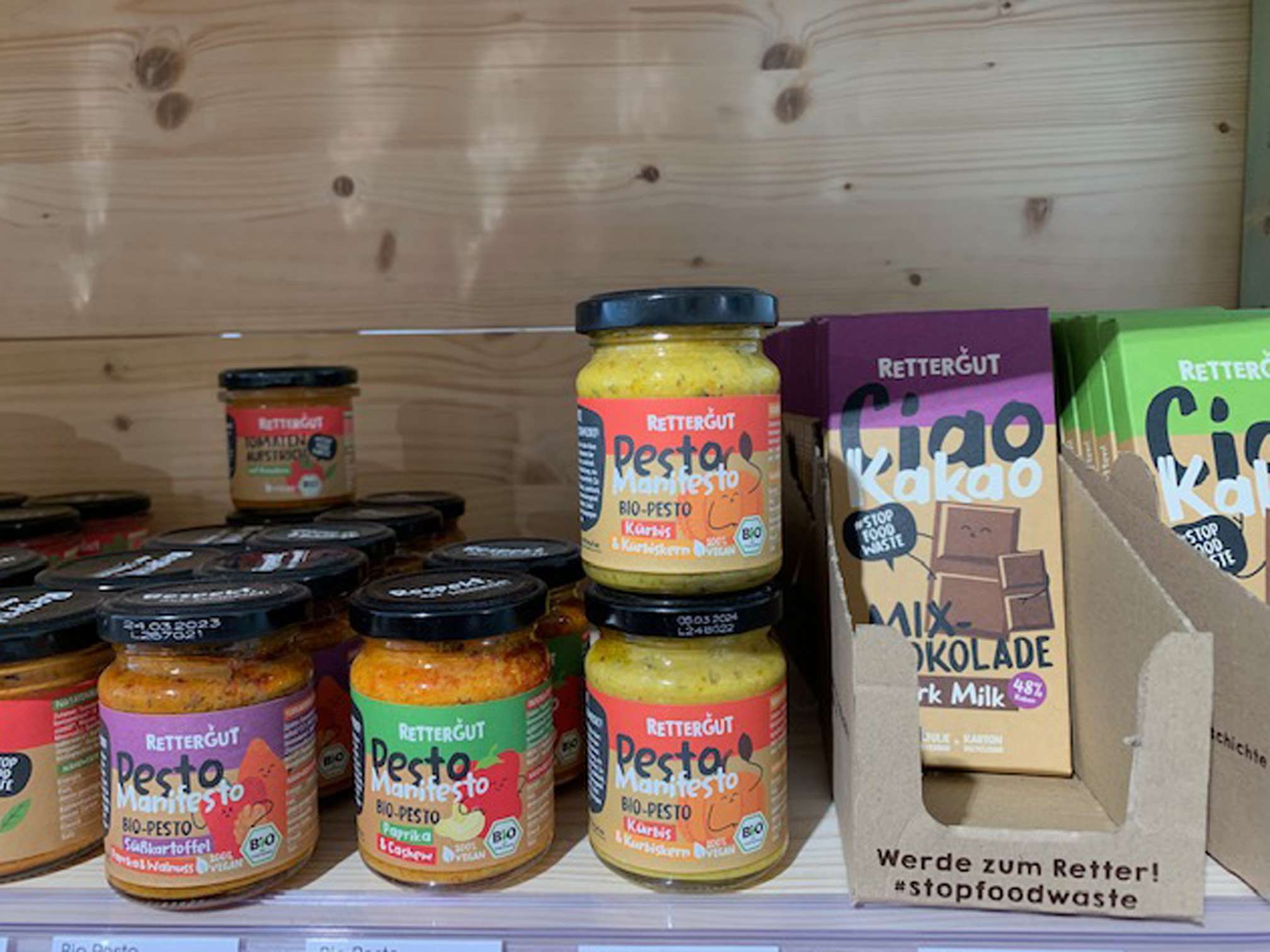Im Zukunftshaus findest du Lebensmittel aus gerettetem Obst und Gemüse. Wir haben Pestos, Aufstriche, Nudeln und Schokolade aus geretteten Zutaten.