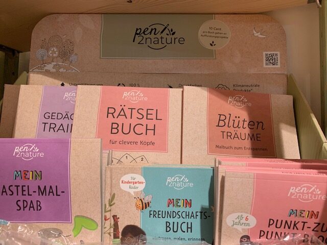 Die Rätsel-, Mal- und Freundschaftsbücher sowie die Spieleblocks von pen2nature werden aus 100% Altpapier hergestellt. Das Papier stammt aus Österreich, wo auch die Produktion stattfindet. Die Bücher sind FSC® Recycling, Ecolabel, cradle to cradle und Blauer Engel zertifiziert und das ganze Unternehmen ist Climate Partner. Die Produkte werden also klimaneutral und mit grüner Energie hergestellt. Als reine Papierprodukte sind sie recycelbar und kommen ohne weitere Umverpackung zu uns in Zukunftshaus.