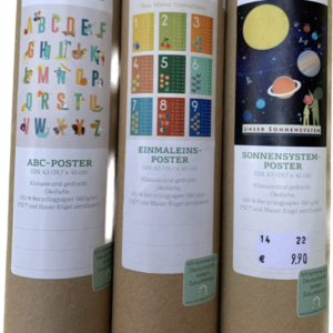 Das Recyclingpapier für die Karten wird in Deutschland produziert, das Papier für die die Poster in Frankreich.
