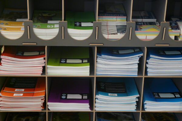 Im Zukunftshaus findest du eine große Auswahl an Schulbedarf: Hefte mit allen gängigen Liniierungen und Größen, Karteikarten, Mappen und Ordner. Alles 100% aus Recyclingpapier.