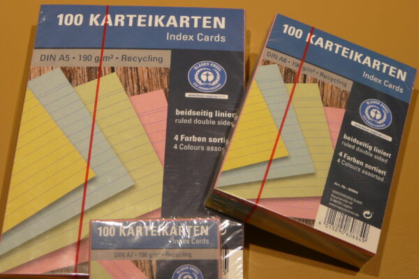 Die Papiere stammen alle zu 100% aus Recycling Papier.