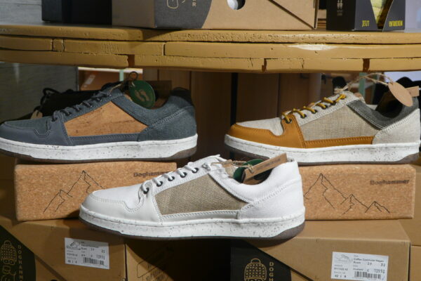 In allen Schuhen von doghammer ist recycelter Kork enthalten – entweder in den Sohlen, in der Innensohle und/oder im Obermaterial. Der Kork stammt teilweise aus der Cork Collect challenge bei der alte Weinkorken gesammelt werden (Sammelbox steht auch bei uns im Zukunftshaus). Neben recyceltem Kork wird recycelter Gummi für Sohlen, recyceltes Meeresplastik in Obermaterialien, recycelte Baumwolle oder Leinen verwendet- der Anteil ist stark vom jeweiligen Modell abhängig. Um die hohe Haltbarkeit und Qualität zu gewährleisten werden im Sohlenbereich auch neue Rohstoffe (Gummi) eingesetzt.