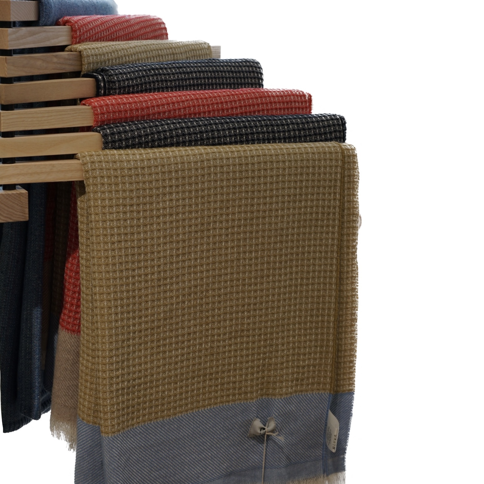 Die Decken von Rifo ist aus 60% recycelter Baumwolle und 40% BCI zertifizierter Baumwolle.