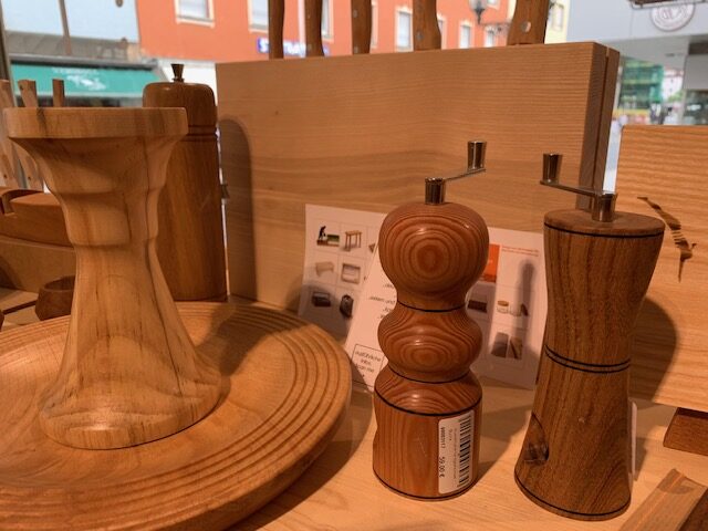 Im Zukunftshaus findest du handgedrechselte Muskat-, Peffer- und Salzmühlen.