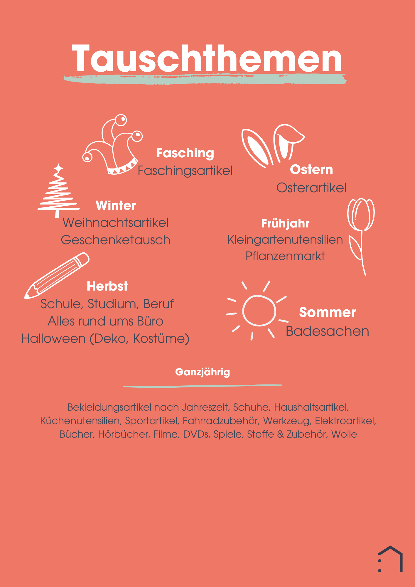 Außerdem haben wir je nach Jahreszeit ein besonderes Tauschthema. Schau dir dazu am besten die Grafik an.